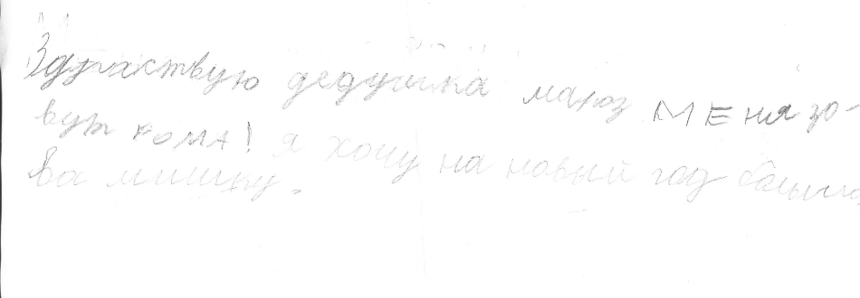 "Здраствую дедушка мароз меня зовут Рома! Я хочу на Новый год большова мишку".