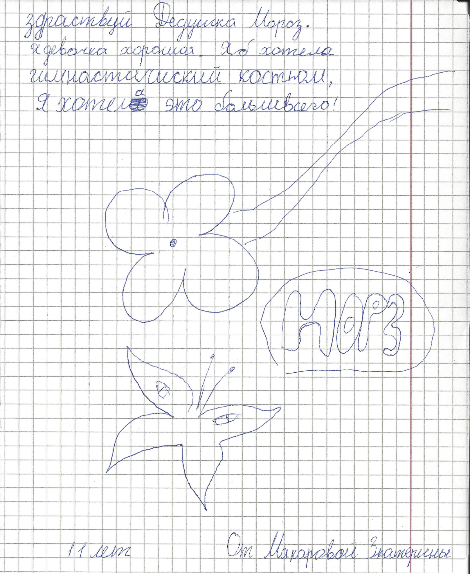 Я девочка хорошая. Яб хотела гимнастический костюм, я хотела эта большевсего! От Зкатерины 11 лет"
