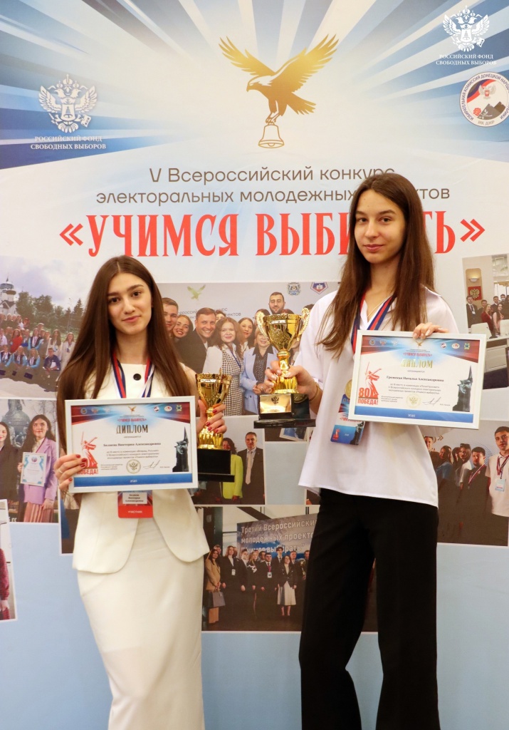 В Донецке состоялся финал Пятого юбилейного Всероссийского конкурса электоральных молодежных проектов «Учимся выбирать», который проводит Российский фонд свободных выборов. В финале конкурса свои электоральные проекты защищали 30 участников из 17-ти субъектов Российской Федерации, в том числе председатель Молодежного Леноблизбиркома Виктория Беляева и член МИК Наталья Громская.