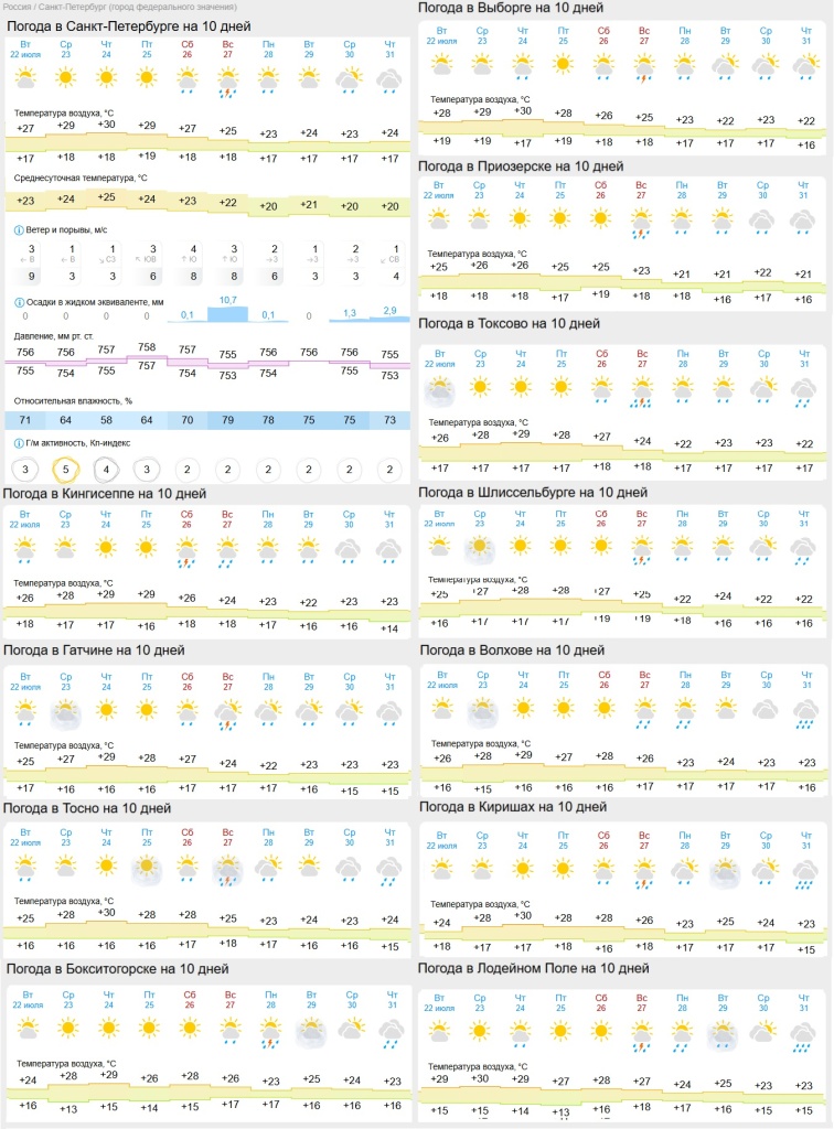 Повезло тем, кто сумел взять отпуск в середине июля и при этом остался проводить его в Ленинградской области. Судя по прогнозам, всю текущую неделю сохраниться солнечная и очень теплая погода.
