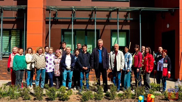 А также высадили молодые яблони, декоративные кустарники и разбили новые цветочные клумбы.