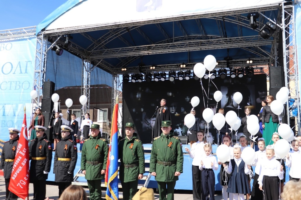 Пролог торжества завершился знаменитой песней «Журавли», которую проникновенно исполнил благочинный Приозерского округа, настоятель Собора Рождества Пресвятой Богородицы в г. Приозерске, протоиерей Димитрий Звездилин. На последних аккордах в небо полетели белые воздушные шары. Этот трогательный момент никого не оставил равнодушным.