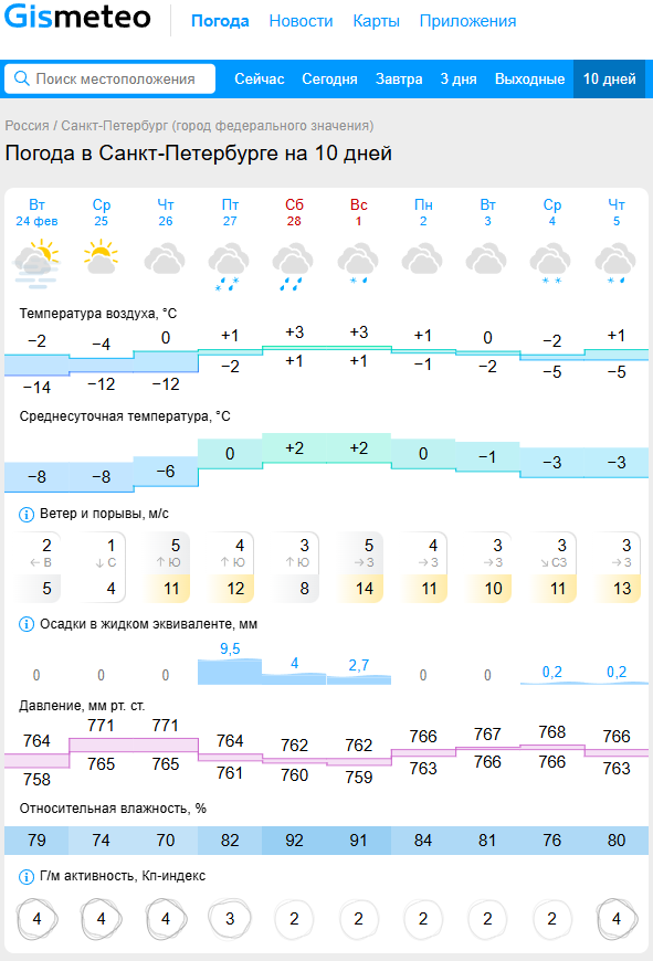 Прогноз по Санкт-Петербургу от РОСГИДРОМЕТ